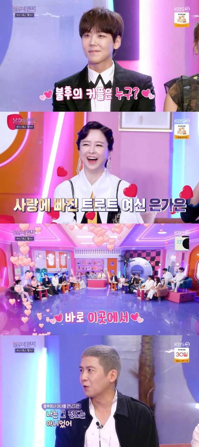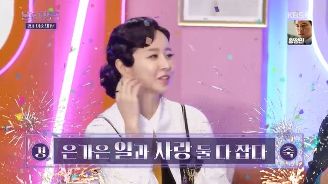 이날 이찬원은 "여기에 '불후의 명곡'에서 사랑의 결실을 맺은 분이 있다"며 은가은을 소개했다.