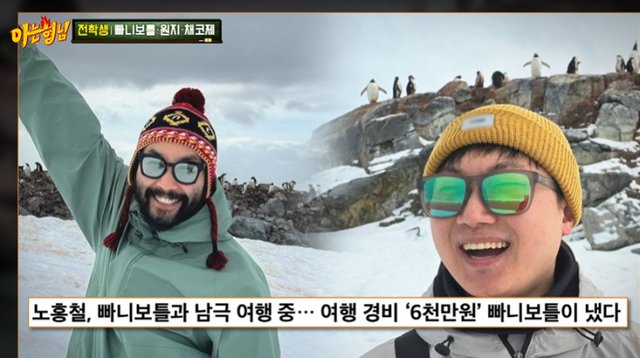 이날 강호동은 “얼마 전에 기사 봤는데 노홍철이랑 남극에 가는데 빠니보틀이 전체 경비를 다 댔다고 하더라”고 말했다. 여행 경비는 약 6000만 원이 들었다고.
