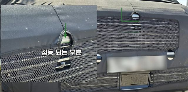 이 유튜버가 포착한 영상이 화제가 되는 건 바로 심리스 호라이즌 램프의 점등 위치다. 놀랍게도 전면부 카메라가 장착된 그릴 상단에 주간주행등이 점등된 모습이 포착됐다.