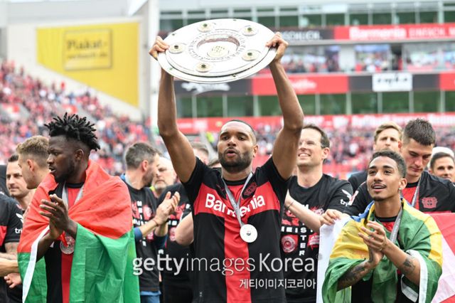 사진은 2023~24 분데스리가 무패 우승을 확정한 뒤 트로피 세리머니에 참석한 타의 모습. 사진=게티이미지