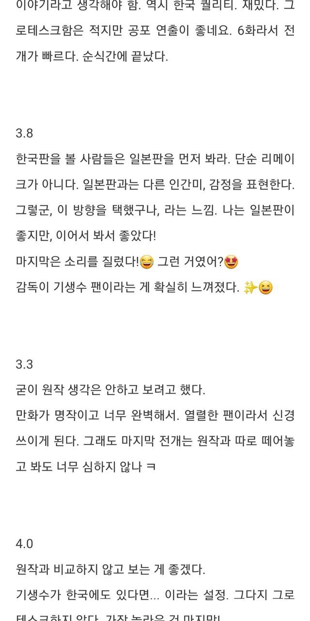 한국판 기생수를 본 일본인들 반응..