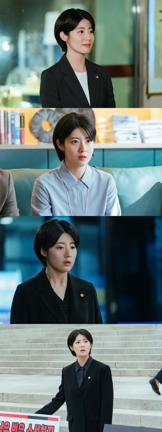 차은경(장나라)의 아픔에 눈물을 흘리며 자책하는 모습, 이혼 소송을 성공적으로 마친 후 감사 인사를 받으며 벅찬 감동을 느끼는 모습, 온전히 처음 맡아본 사건에 의욕적으로 임하는 모습과 시행착오 속에서도 굳은 신념으로 맞서는 당찬 모습 등 캐릭터의 내면을 생생하게 표현하며 안방극장의 감정까지 동기화시켰다.