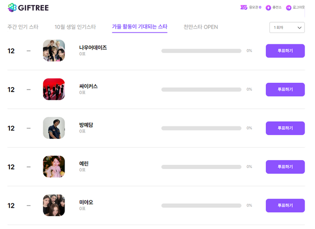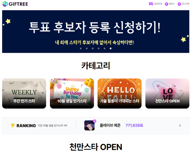 기프트리 가을 활동이 기대되는 스타 화면 / 기프트리
