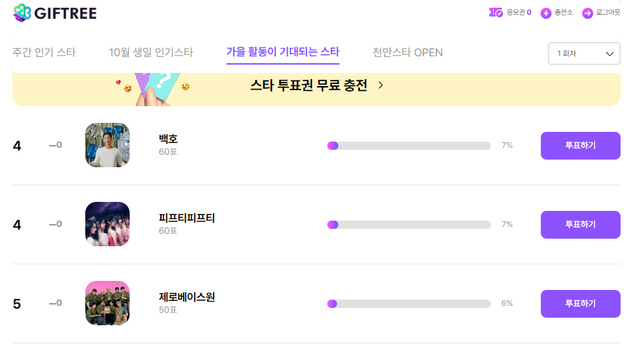 한편, 제로베이스원은 팬 투표 서비스 '기프트리'가 9/9부터 9/23일까지 시행하는 '가을 활동이 기대되는 스타' 후보로 등록되어 있다. 더불어 천만 표를 달성할 경우 15일간 전국 올리브영 매장 전광판 광고가 제공되는 '천만스타 OPEN' 후보에도 올라있다.
