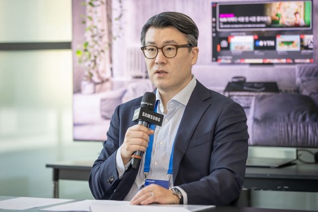 김용수 삼성전자 영상디스플레이사업부 부사장이 'IFA 2024'에서 '삼성 TV 플러스'에 대해 설명하고 있다. 사진=삼성전자 제공