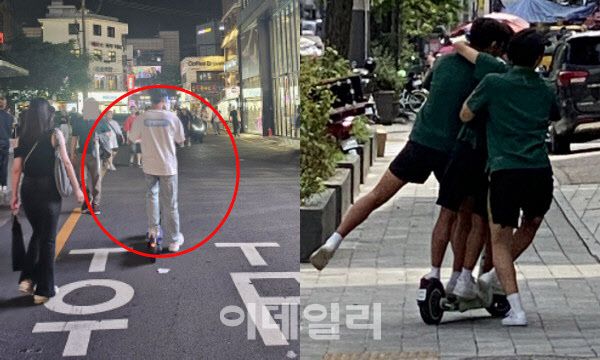 특히 술을 마신 뒤 PM의 핸들을 잡은 이들은 연신 비틀거려 금방이라도 사고가 날 것만 같았다. 실제 붐비는 인파 사이사이를 가던 PM 운전자가 술에 취해 입간판에 부딪히기도 했다. 인파가 붐비는 골목에서 오토바이와 동선이 겹쳐 서로 급정거하는 아찔한 장면도 연출됐다. 만약 사고가 났다면 그 여파로 인근에 밀집한 시민들도 다칠 우려도 커 보였다.