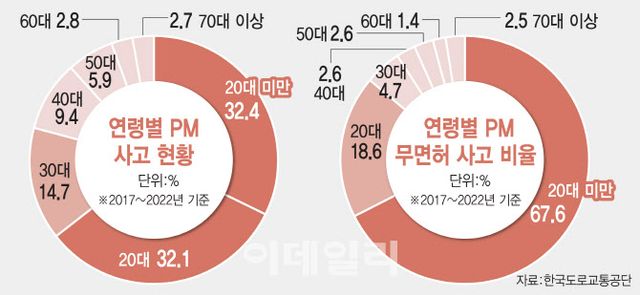 성인들뿐만 아니라 운전면허가 없는 청소년들 역시 규정을 지키지 않은 채 PM을 탑승하고 있었다. PM을 대여하기 위해서는 도로교통법상 만 16세 이상 원동기 또는 운전면허를 소지해야 하지만 이들 대부분은 무면허 상태로 운전하고 있었다. 이들은 부모 또는 성인인 가족의 명의를 도용하거나 면허 없이도 대여할 수 있는 업체를 이용해 PM을 대여하고 있었다.