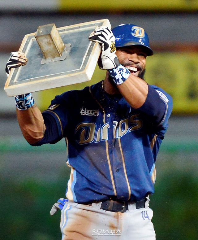 김도영은 지난 8일 광주 키움 히어로즈전을 마친 뒤 2015년 외국인 타자 에릭 테임즈(당시 NC 다이노스)의 '베이스 세리머니'를 회상했다. 당시 46홈런-39도루를 기록 중이던 테임즈는 10월 2일 인천 원정에서 도루를 성공, KBO리그 사상 첫 40(홈런)-40(도루) 금자탑을 쌓았다. 2루에 도달한 그는 베이스를 뽑아 흔드는 세리머니로 대기록을 자축했다. 당시 테임즈는 "홈런을 치고도 세리머니를 크게 하는 스타일은 아니다. 베이스 뽑는 건 (도루) 38, 39개를 넘을 때 동료들의 권유가 있었다"라며 "확실히 마음을 못 정했었는데 2루에 갔을 때 하게 됐다"라고 말했다.