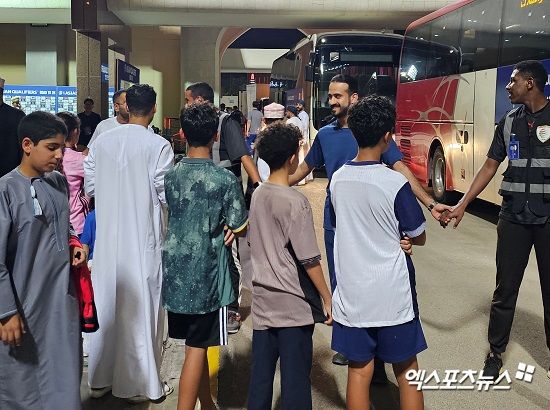 하지만 아이들의 꿈은 이번에도 이뤄지지 않았다. 선수단 버스가 앞뒤로 두 대 있었는데 선수들은 뒤에 있는 버스에 곧바로 탑승했다. 가드들은 사람들이 접근하지 못하게 몸으로 막았다. 오만 취재진과 달리 AD카드가 없던 국내 취재진도 멀리서 바라볼 수밖에 없었다.