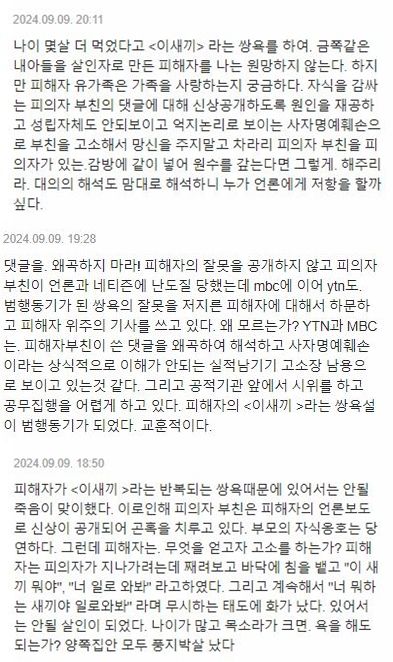 그는 아울러 "피해자 탓이 결정적인 것을 알면 편파보도 하지 말라. 유족 측의 보도는 즉각 중단하라"며 언론을 겨냥한 댓글을 달기도 했다.