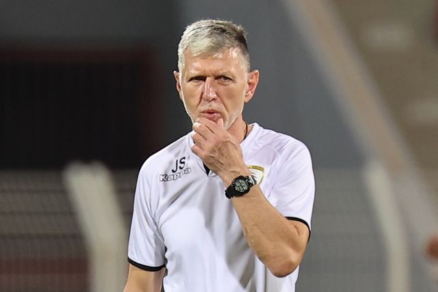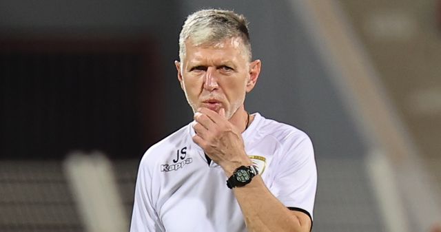 북중미 월드컵 3차 예선 한국과의 경기를 앞둔 오만 축구 국가대표팀 야로슬라프 실하비 감독이 경기 하루 전인 9일 오후(현지 시각) 술탄 카부스 경기장에서 열린 팀 훈련을 지켜보고 있다. / 연합뉴스