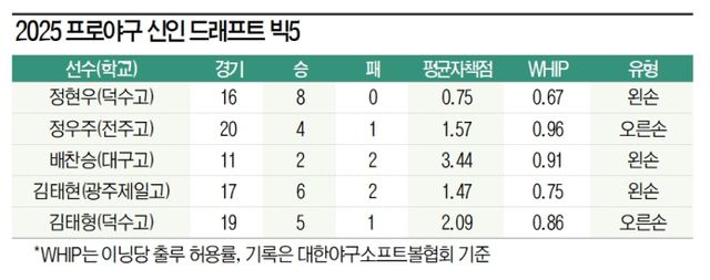 변수는 배찬승의 쓰임새다. 배찬승은 짧은 이닝을 강하게 던지는 불펜에 어울린다는 평가가 있다. 같은 왼손 투수로 상위 지명을 다투는 김태현과 상반된다. 김태현은 최고 구속이 배찬승보다 4~5㎞/h 정도 느리지만 선발 완성도는 더 높다는 평가. B 구단 운영팀장은 "배찬승이 왼손으로 150㎞/h를 던지지 않나. (그만큼 희소성은 있지만) 선발이 필요하다면 김태현이나 김태형이 맞을 수 있다. (팀의 보강 포지션이) 중간이냐 선발이냐 어떻게 보느냐가 중요할 거 같다"고 말했다.