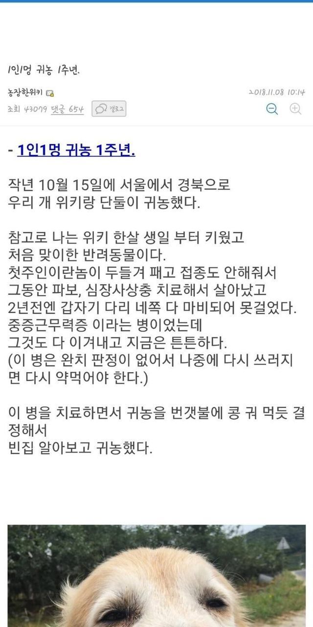 댕댕이랑 둘이서 귀농 간 아재