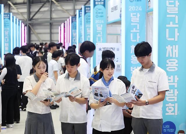 本月10日,在京畿道水原市举行高中毕业生就业博览会,吸引不少求职者。【图片提供 韩联社】