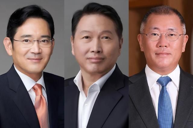 从左至右依次为三星电子会长李在镕、SK集团会长崔泰源和现代汽车集团会长郑义宣。【图片来源 网络】