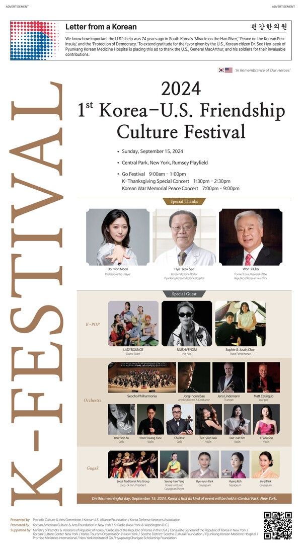 인천상륙작전이 오는 15일 올해로 74주년을 맞는다. 그리고 미국 뉴욕 센트럴파크에서는 인천상륙작전의 주역인 맥아더 장군을 기념하고 한미 양국 문화를 교류하는 '제1회 한미친선문화축제'가 열린다. 미국의 중심에서 200~300명 규모의 바둑 행사와 국악, 그리고 K팝은 물론 댄스까지 펼쳐진다.