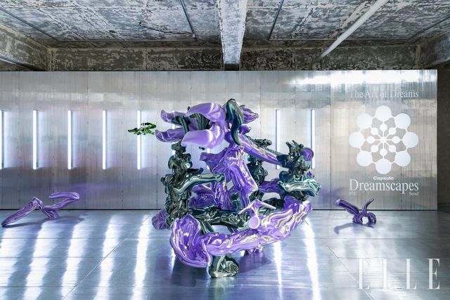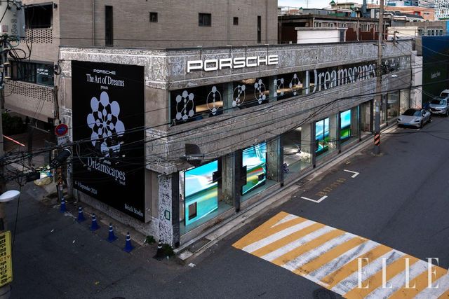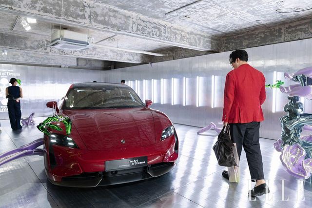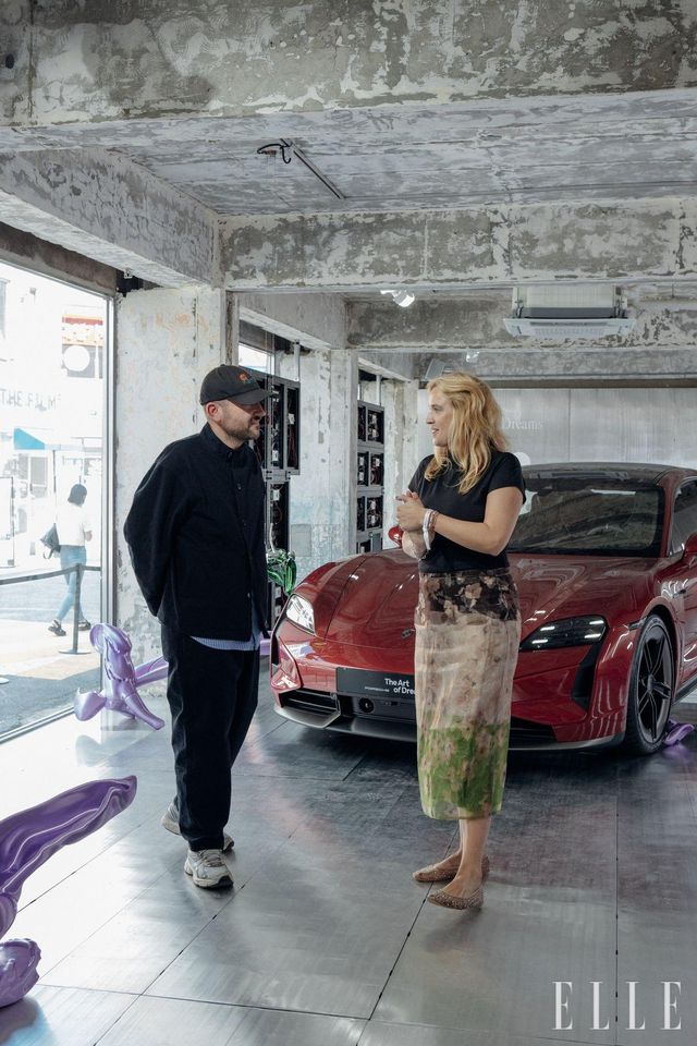 새로운 공간으로 재탄생되어 전에 없던 경험을 선사할 수 있다는 점이 좋았습니다. 특히 포르쉐 타이칸 터보 K-에디션과 오드리 라지(Audrey Large)의 아트 피스의 퍼플, 그린 같은 컬러가 ‘AL-FORM’의 표면에 은은하게 반사돼 생동감 넘치는 장면으로 연출되어 더욱 잘 어우러졌던 것 같아요.