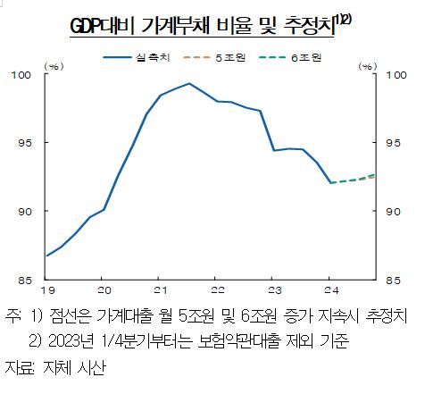 [아이뉴스24 정태현 기자] 국내총생산(GDP) 대비 가계부채 비율이 다시 상승할 전망이다. 한국은행은 과도한 금리 인하 기대가 형성되지 않도록 시장을 관리해야 한다고 지적했다.