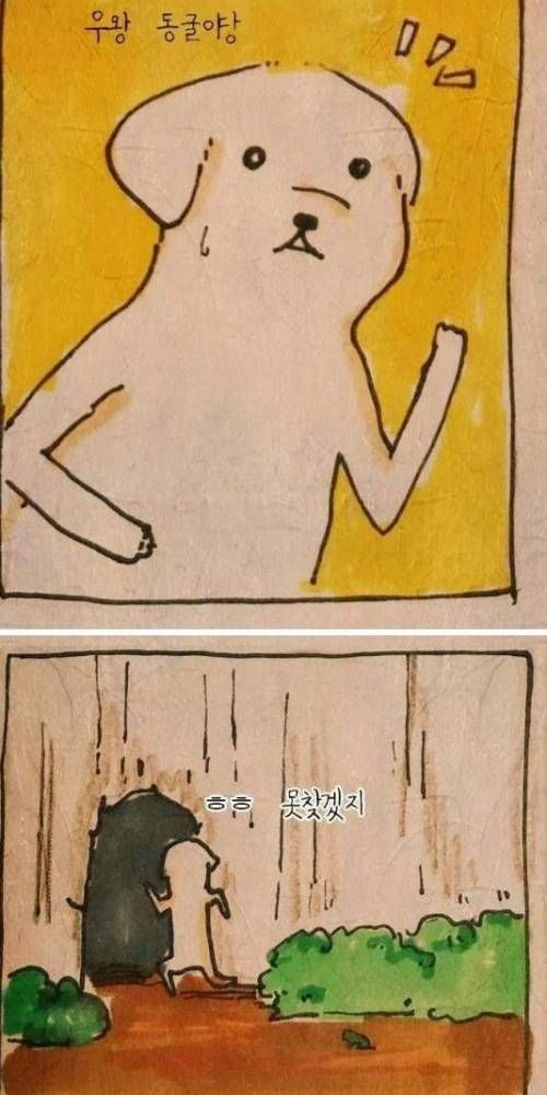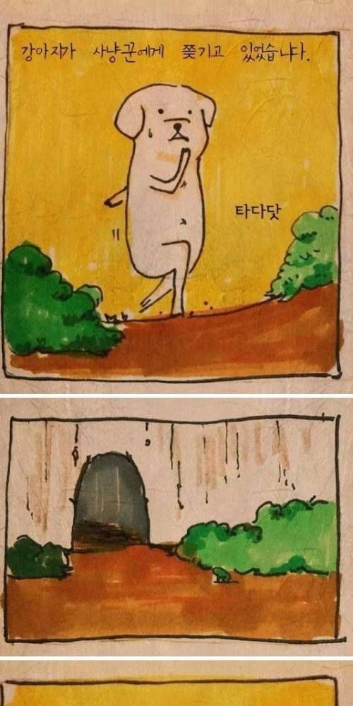 강아지가 사냥꾼에게 쫓기고 있었습니다,,