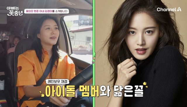 뒤이어 등장한 아내 김경미. 패널들은 "미인이시다", "아이돌 멤버와 닮은 꼴이다"라며 놀라움을 표했다.