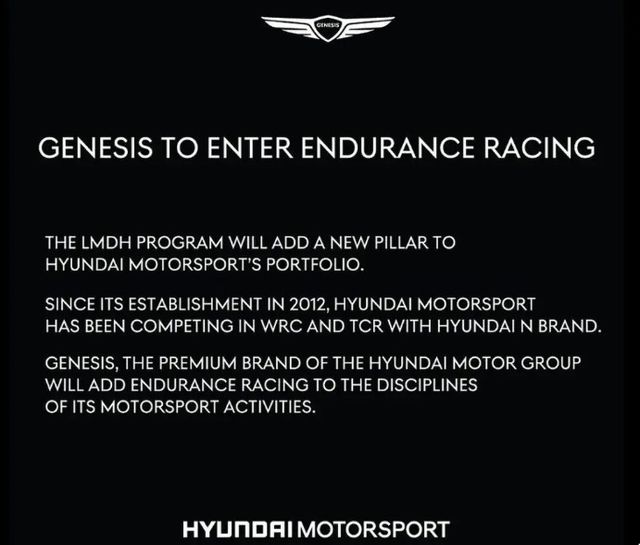 [M투데이 이세민 기자] 현대자동차의 프리미엄 브랜드 제네시스가 소셜미디어를 통해 LMDh 클래스 참가를 공식화했다.