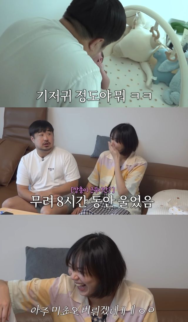조리원 퇴소 첫날부터 강재준 이은형 부부는 새벽 1시부터 8시까지 울어대는 아들 덕에 내내 잠을 이루지 못했다고.