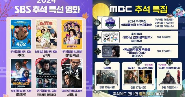 지상파 방송사가 2024년 추석 특선 영화 라인업을 공개했다.