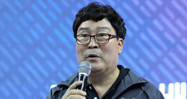 김택규 대한배드민협회 회장이 지난 6월 25일 오후 충북 진천군 진천국가대표선수촌 핸드볼경기장 훈련장에서 열린 2024 파리하계올림픽 배드민턴 국가대표팀 미디어데이에서 인사말을 하고 있다. / 뉴스1