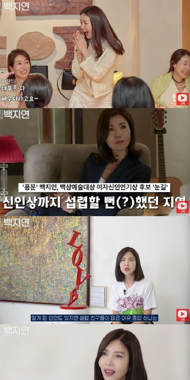 지인들이 대부분 배우인 것에 대해서는 "나도 왜 그렇게 됐는지 모르겠다. 나 (배우) 신인상 후보에도 올랐다. 드라마를 잠깐 출연해 알게 된 인연도 있지만 셀럽 친구들이 많은 이유 중 하나는 '피플인사이드'가 있다. 백지연의 뉴스Q, MBC뉴스데스크, 백지연의 백야 등 수많은 토크쇼를 해서 셀럽 지인들이 많고 성격이 맞으면 우정으로 발전한다. 가수도 있다"라고 설명했다.