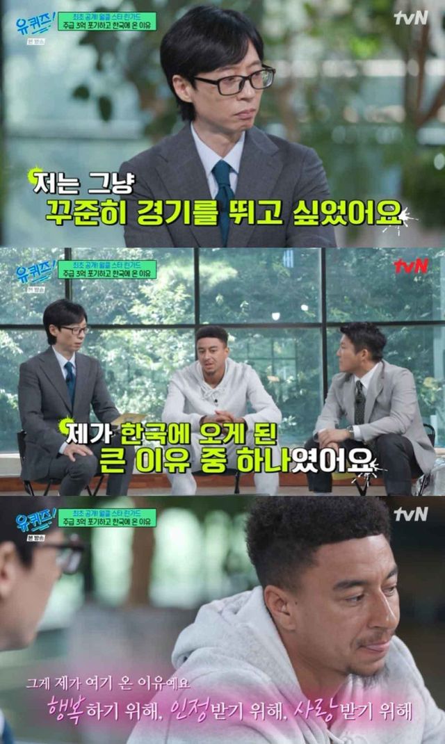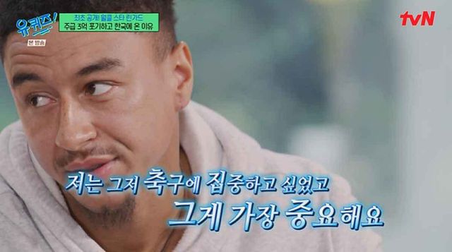 11일 2024년 시즌을 앞두고 K리그1 FC서울로 깜짝 이적한 린가드는 EPL 시절 주급 약 3억 원(연봉 약 175억 원)을 포기하면서까지 한국으로 온 이유를 '유 퀴즈 온 더 블럭'(이하 '유퀴즈')에서 공개했다.