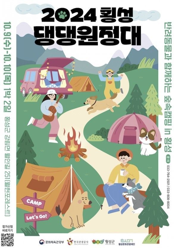 강원 횡성군과 횡성문화관광재단이 2024년 지역관광추진조직(DMO) 육성사업의 일환으로 반려동물과 함께하는 숲속 캠핑 in 횡성 '2024 횡성 댕댕원정대'를 운영한다.