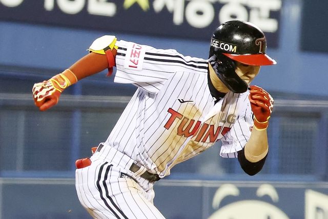 지난 4월 26일 오후 서울 송파구 잠실야구장에서 열린 프로야구 '2024 신한 SOL Bank KBO리그' KIA 타이거즈와 LG 트윈스의 경기 5회말 1사 주자 2, 3루 상황에서 LG 박해민이 2타점 적시타를 친 뒤 1루를 향해 쇄도하고 있다. / 뉴스1