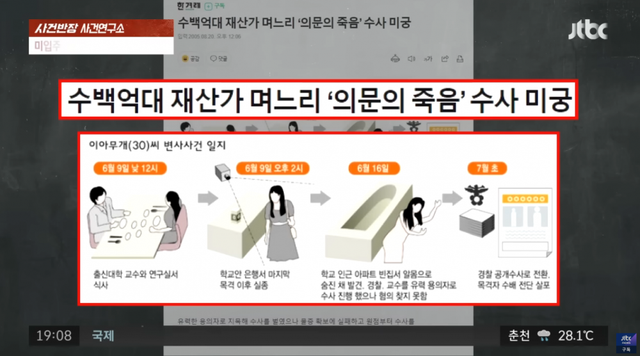 정황은 K대 B모 교수인데 증거가 없어서 그냥 미제 사건