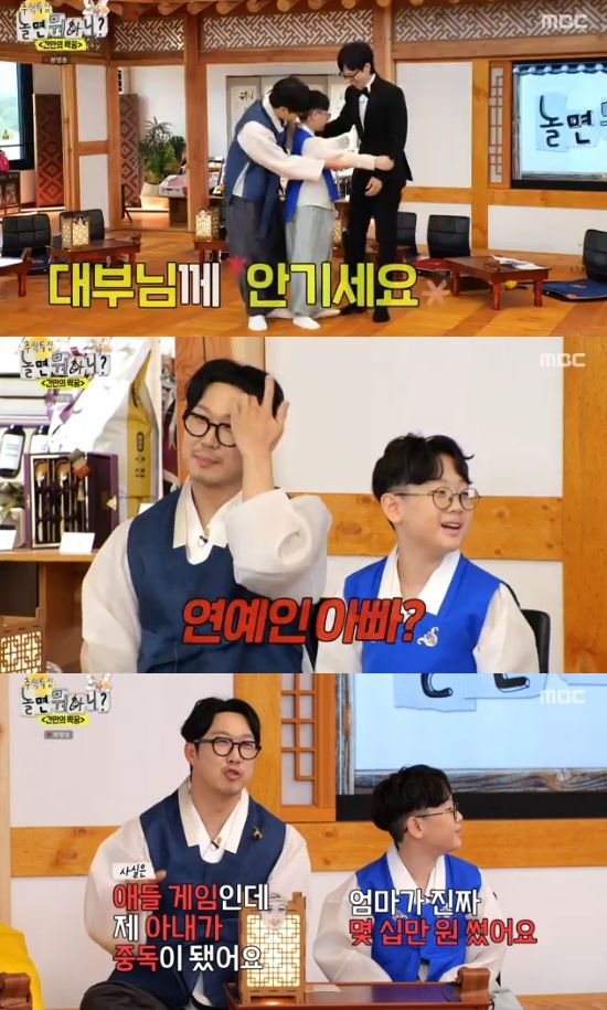 이어 "아빠가 게임 현질(?)도 하게 해주고 맛있는 것도 해준다. 좋은 아빠"라며 반전 매력을 선보였다. "엄마(별)가 알면 큰일난다"라는 유재석의 말에 하하는 "애들 엄마가 더 한다. 아이패드 네 개를 돌리면서 게임을 하더라"라며 아내 별의 게임 중독 근황을 폭로(?)해 웃음을 자아냈다.