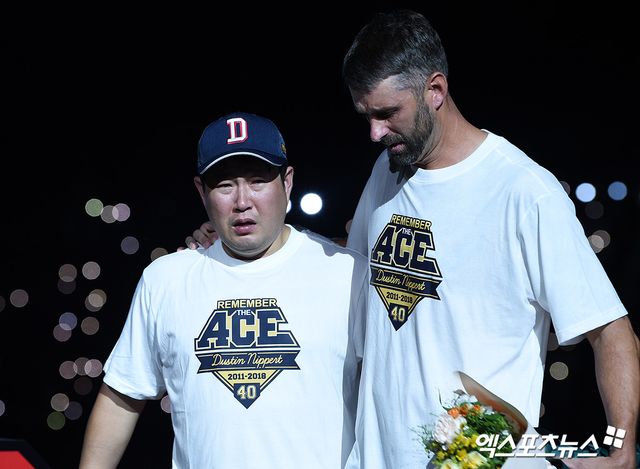 (엑스포츠뉴스 잠실, 김지수 기자) 두산 베어스의 '왕조'를 함께 일궈낸 영혼의 배터리가 서로를 끌어안고 감동의 눈물을 흘렸다. 더스틴 니퍼트의 은퇴식은 포수 양의지가 있어 더 빛이 났다.