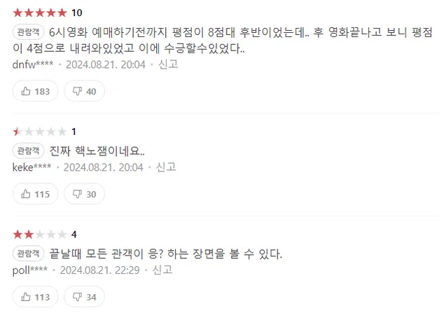 그러면서 영화평점이 갈리고 있는 모습이 되어버림