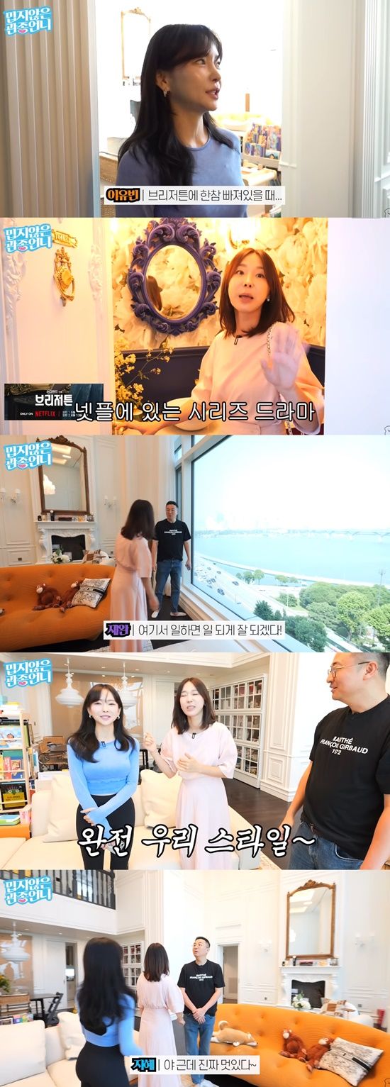 이날 이지혜는 "태리 친구의 부자 엄마"라며 이유빈 전 티르티르 대표의 청담동의 펜트하우스를 방문했다. 그의 집은 높은 층고와 한강뷰가 보이는 통창, 럭셔리한 프렌치 식 인테리어가 럭셔리함을 자아냈다.