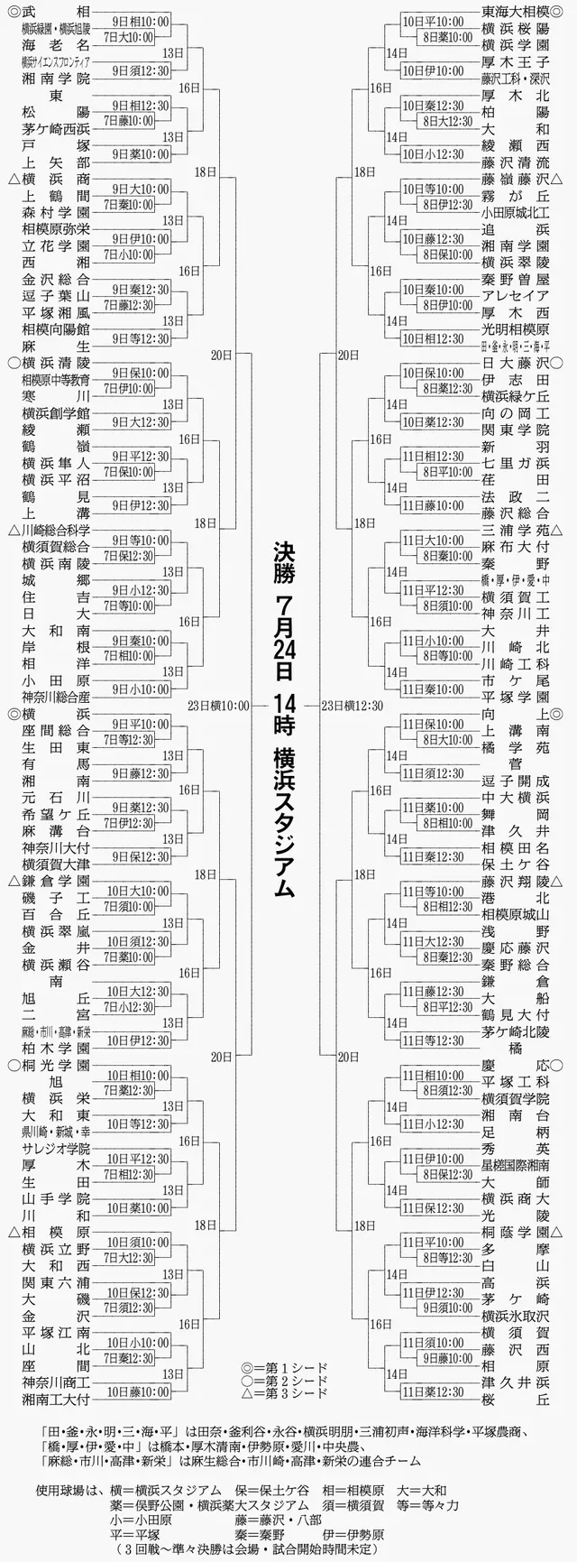 올해 고시엔 카나가와현 지역 대표 선발전 리스트