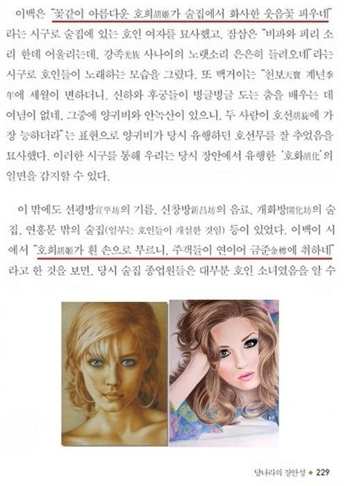 즉 당나라에는 이란계 소그드 여성뿐만이 아니라 중앙아시아 백인 여성들도 여럿 들어와 있었고 심지어 천자(天子)