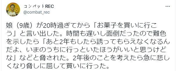 딸(9살)이 20시가 지나서 `과자 사러 가자` 며 말을 꺼냈다.
