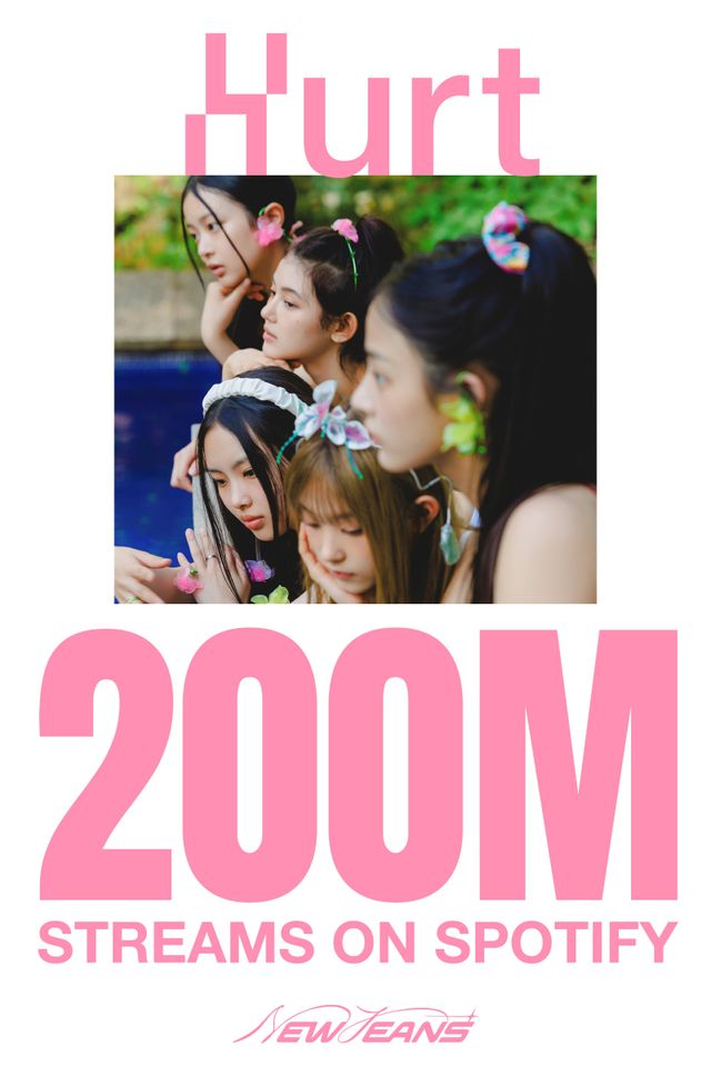 16일 세계 최대 음원 스트리밍 플랫폼 스포티파이에 따르면 뉴진스(민지, 하니, 다니엘, 해린, 혜인) 데뷔 앨범 ‘뉴 진스’(‘New Jeans’)의 수록곡 ‘허트’는 지난 14일 기준 누적 2억 3만 7371회 재생됐다. ‘허트’는 이로써 뉴진스 통산 아홉 번째 2억 스트리밍 곡이 됐다.