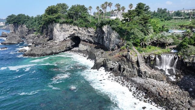 초복을 사흘 앞둔 지난 7월 12일 오전 제주 서귀포시 토평동 소정방폭포를 찾은 관광객이 여름 정취를 만끽하고 있다. / 연합뉴스