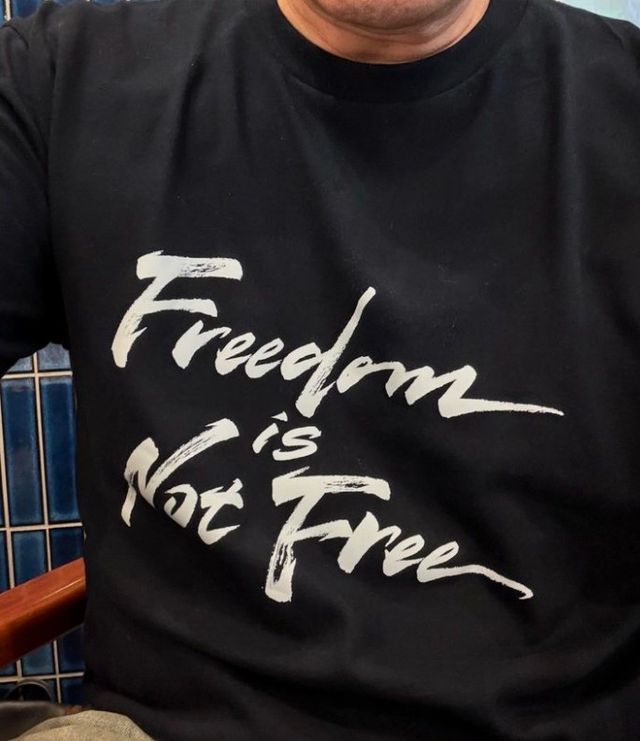 16일 정 회장의 인스타그램에는 '자유는 공짜가 아니다'라는 의미의 영문 글귀가 새겨진 검은색 티셔츠 사진을 올라와 있다. 얼굴이 나오지는 않았지만 옷을 입은 사람은 정 회장으로 추정된다.