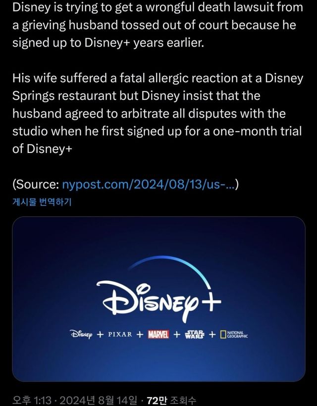 “몇 년 전 디즈니+무료체험 서비스 가입할 때의 약관에 따라