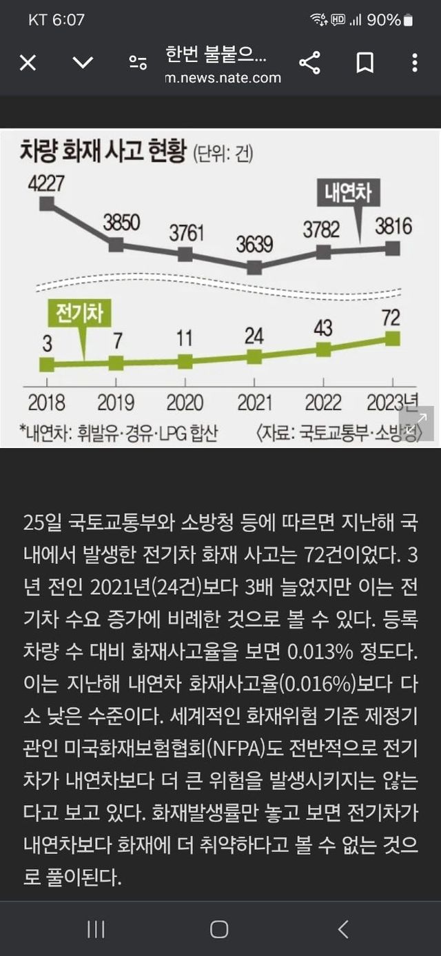 “내연 대비 화재발생률 크게 차이 없음”