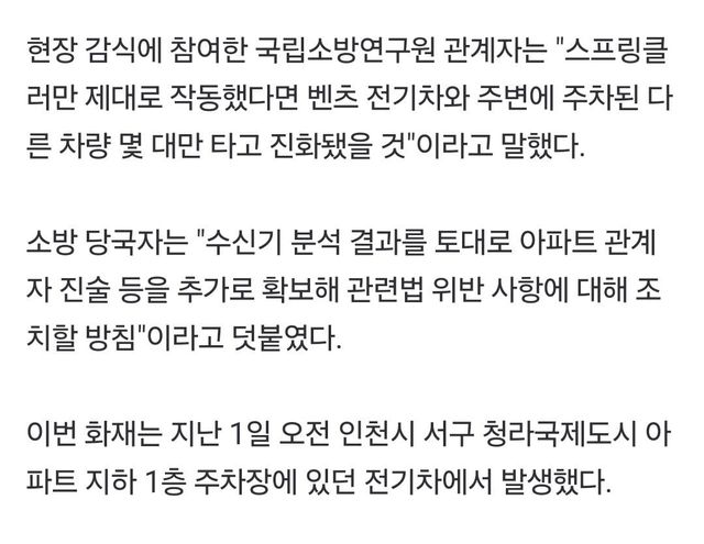 “스프링클러만 제대로 작동했다면 다른 차량 몇 대만 타고 진화됐을 것”