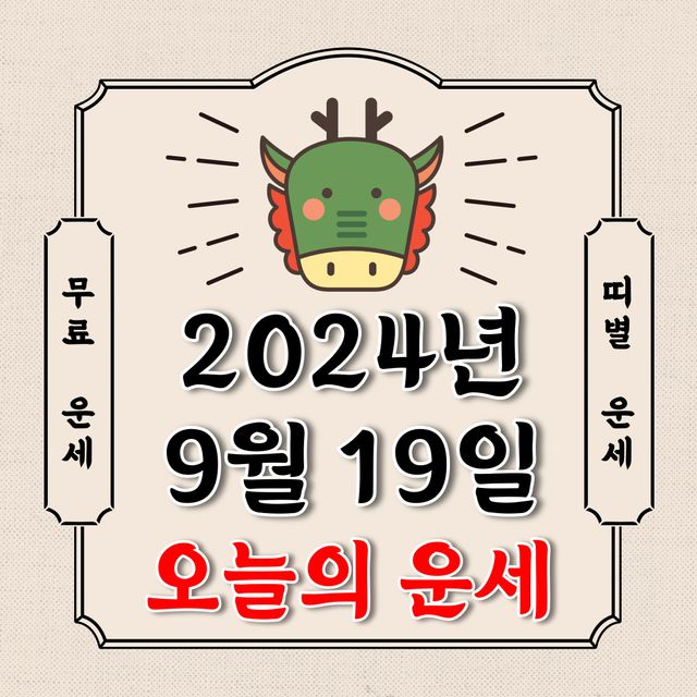 오늘의 운세 2024년 9월 19일 목요일 (음력 8월 17일 / 띠별 운세 / 생년월일 운세)에 대해 알아 보겠습니다.