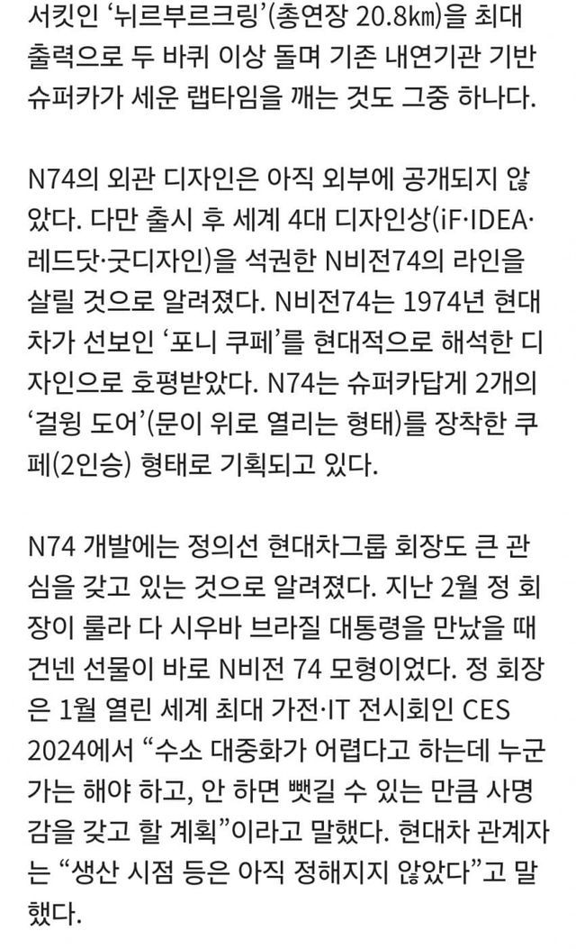 아직 생산 시점도 안정해졌는데 뉘르 도전해서 슈퍼카들 랩타임 딴다고 하는데