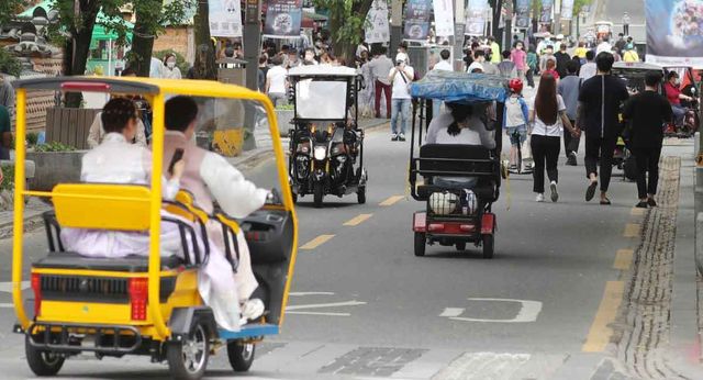 전동차 타고 한옥마을 누비는 관광객들. 추석 연휴 나흘째이자 개천절인 2020년 10월 3일 전북 전주시 한옥마을이 관광객과 귀성객들로 북적이고 있다. / 뉴스1