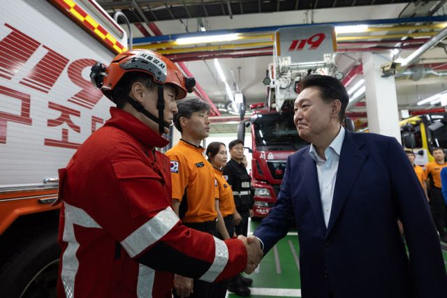 이 자리에서 윤 대통령은 경찰공무원과 소방대원과 현장의 어려움을 청취하고 치안 상황 등을 보고 받으며 처우 개선을 약속하기도 했다.